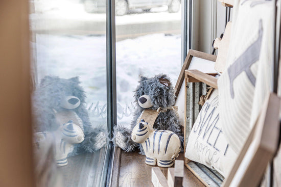 Bartholomew's cousin! She is a talented distracted artist, who has a habit for getting lost in the process. She can’t help it – when inspiration strikes, the hours just melt away... Fortunately, her cousin Bartholomew Bear is always on-hand with a tea top-up and (slightly squashed) plate of biscuits.